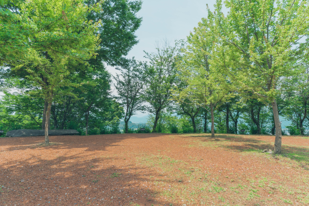美術館エリアは、秩父の山々と下に広がる皆野町を一望しながらキャンプができます。また美術館の隣に位置しているため、気軽にアートも楽しめる場所です。弧を描くように5つのオートサイトがあり、車を横付けできる便利さと、目の前に広がる景観が人気のエリアです。