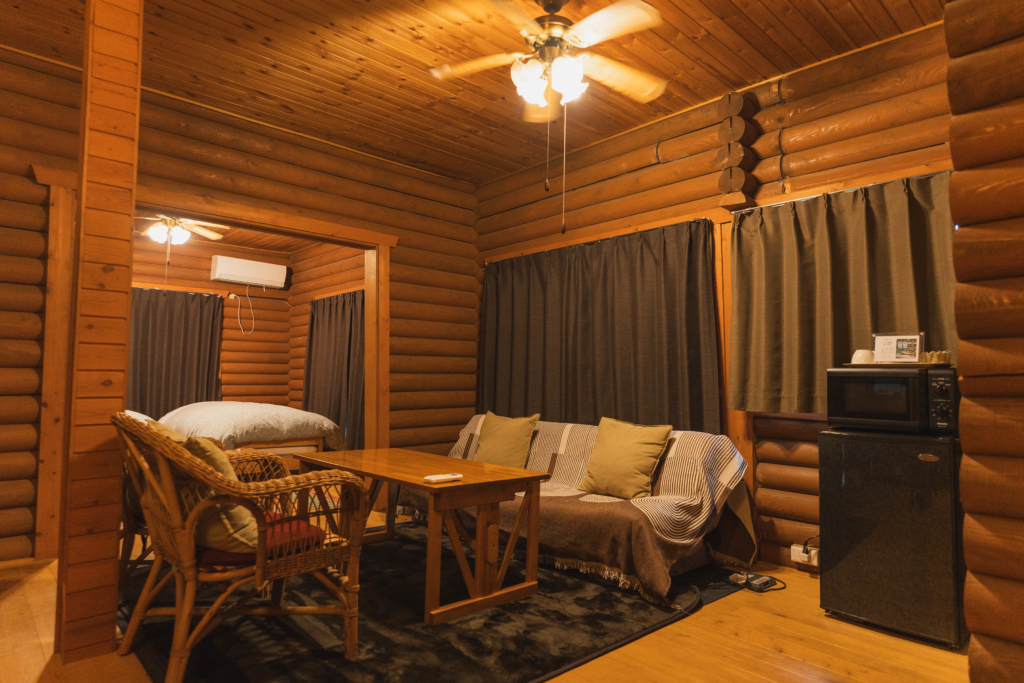 Mahora稲穂山のログハウスは、4名様まで宿泊可能です。