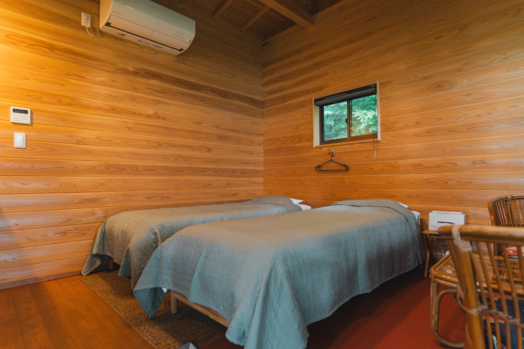 3名様まで宿泊可能なゆったりと自然を楽しむ宿泊施設です。山の中腹にあるため、車で来られることをおすすめします。